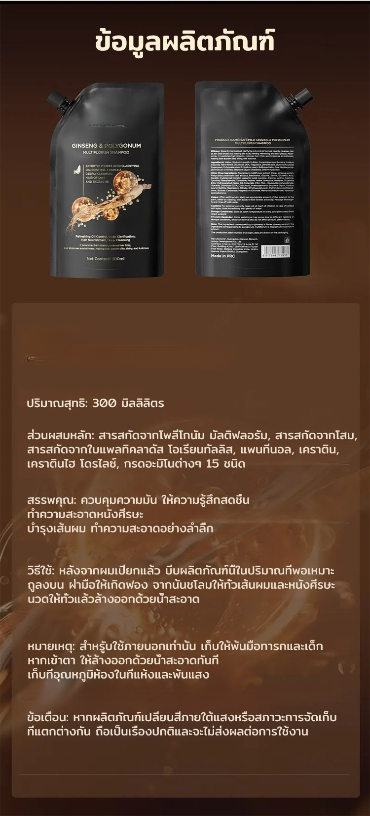 แชมพูสมุนไพรเห็ดหลินจือดำและโชวู